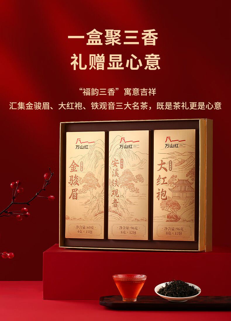品類組合豐富:包含金駿眉、大紅袍、鐵觀音三大經(jīng)典茗茶,一次能體驗(yàn)不同茶類的風(fēng)味(紅茶 + 烏龍茶雙品類)。